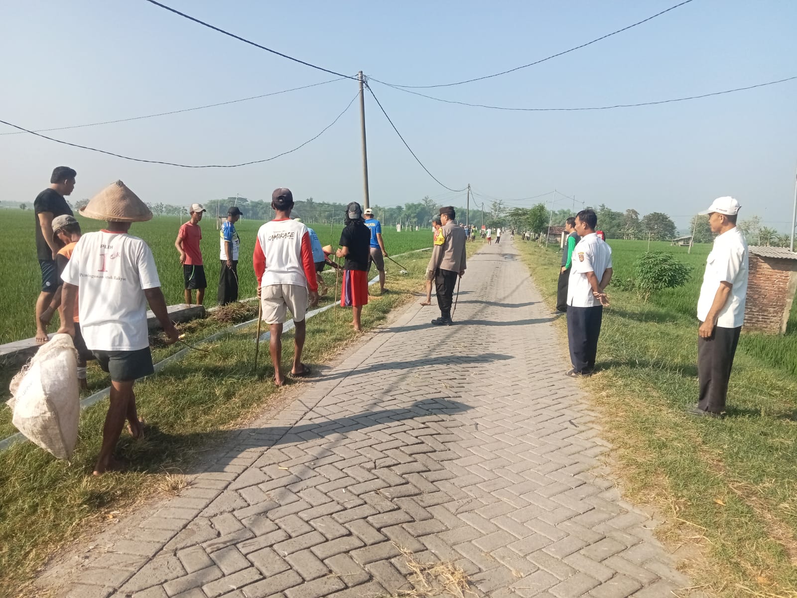 Dalam foto terlihat masyarakat, perangkat desa, serta unsur TNI dan Polri berkumpul bersama sebelum turun ke area persawahan. Menggunakan alat sederhana, mereka bersatu melakukan aksi pemberantasan hama tikus demi menjaga produktivitas hasil pertanian yang menjadi penopang utama ekonomi warga desa.